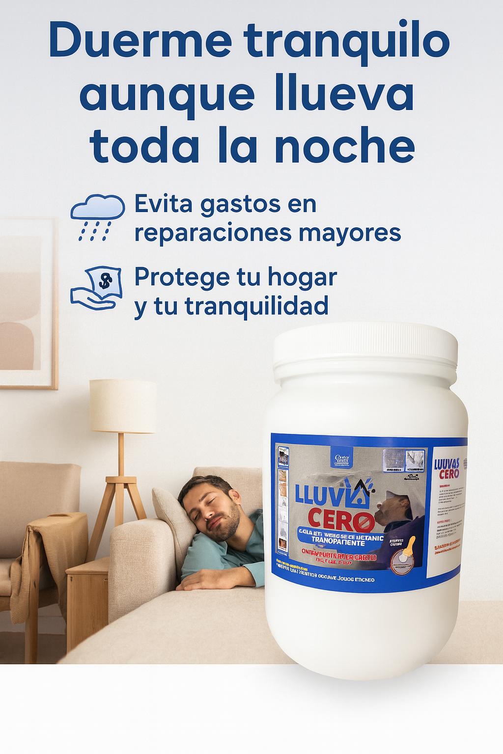 Lluvia Cero™ crea una capa transparente de alta adherencia y elasticidad que sella grietas y repele el agua al instante, sin cambiar la apariencia de tus superficies.